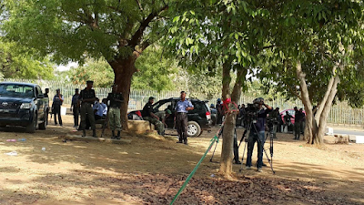 Police men and women laid siege at the Unity Fountain Abuja Sunday, preventing members of the advocacy group for the missing Chibok school girls, Bring Back Our Girls BBOG, march into the villa, as part of their activities to mark 1000 days the girls have been in Boko Haram captivity.